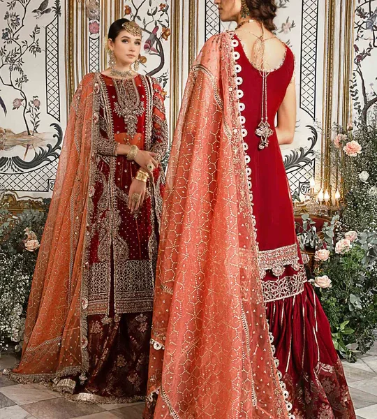 Imrozia – Laaj gharara Luxury Hand-Embellished Net Suit | Unstitched 3-Piece | Wedding Collection ₨ 12,400