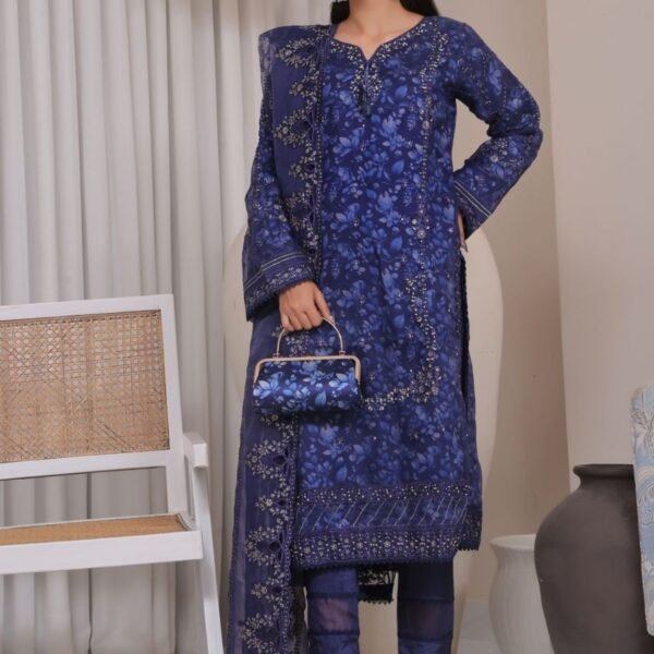 Haleema by Alhassan -With Clutch – blue 🔵– 4PC Semi Stitched Wedding Set