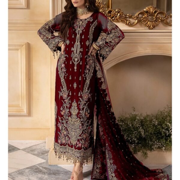 Maria.B D1 Unstitched Embroidered Chiffon Suit – MPC-24-101 | Luxury Festive Wear 2025
