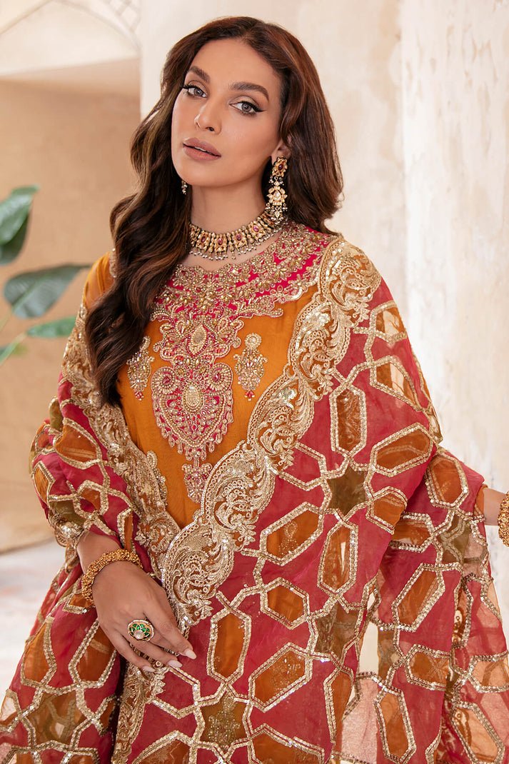 MNR Kesari by AlHasan | Mustard Fancy Organza 4PC Wedding Suit