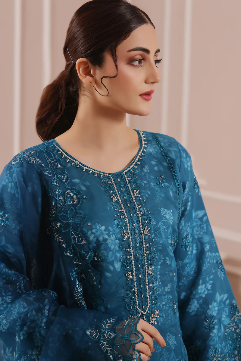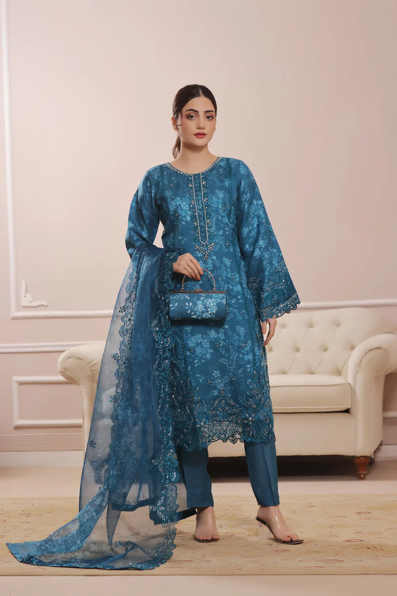 Luxury embroidered & embellished front with digital printed silk inner ✨