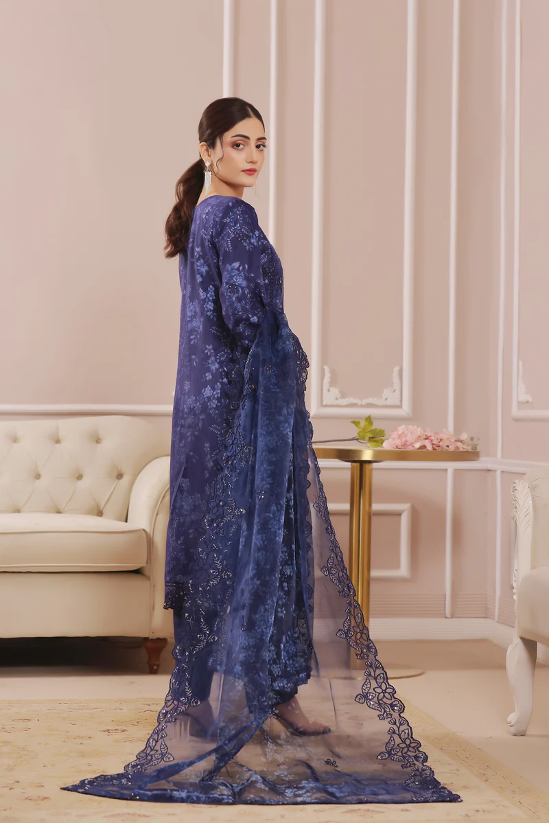 Iznik Embroidered Chiffon – Luxury Formal Wear with Foil Work Detailing