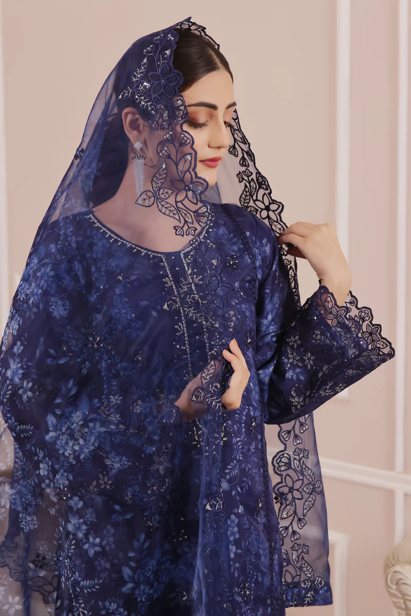 Maria B Zareen Black – Luxury 3D Embroidered Organza Suit with Handwork