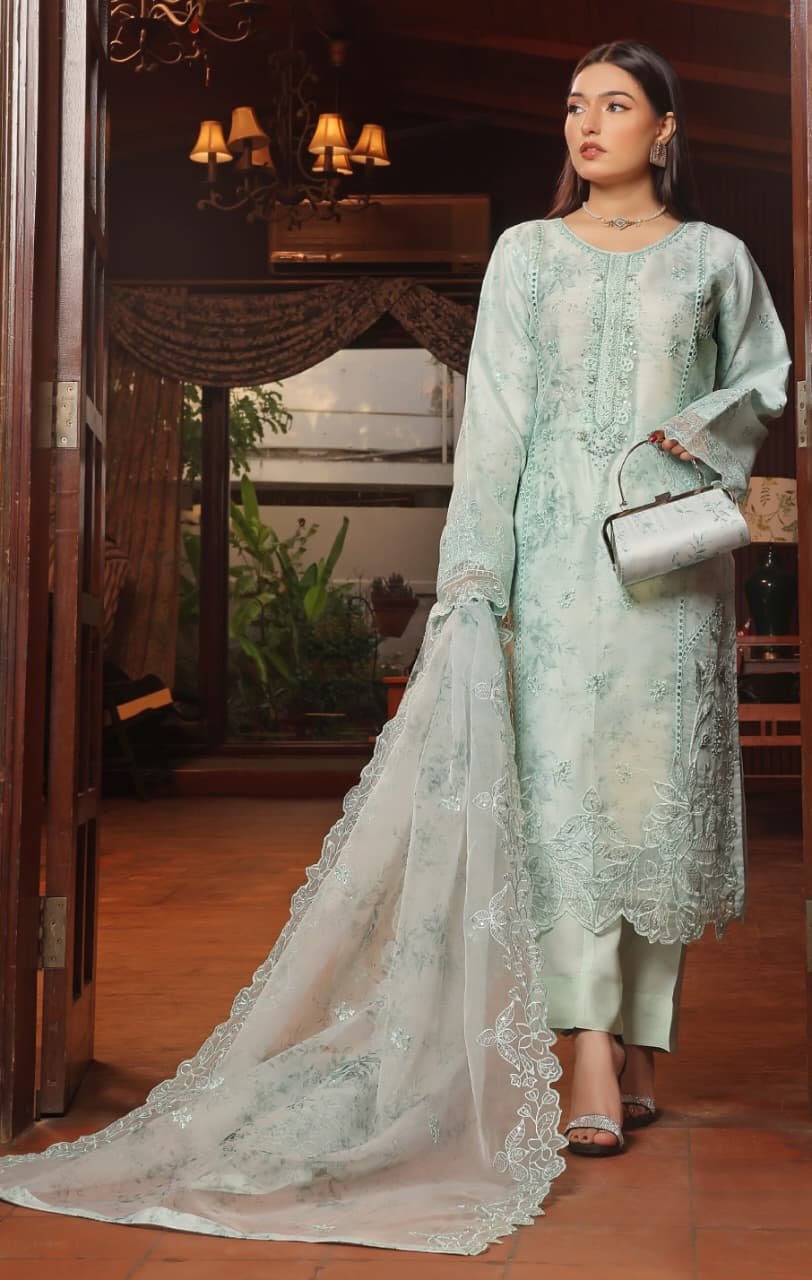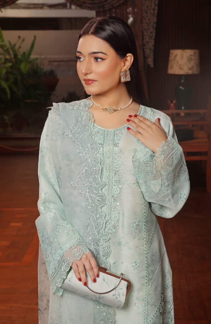 Maria B Sahar – Blue Chiffon Formal Suit for Wedding | 3-Piece Unstitched